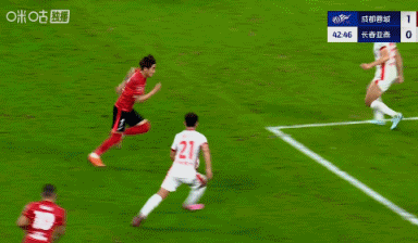 胡荷韬被犯规,为蓉城制造了这次转化为进球的定位球机会↓